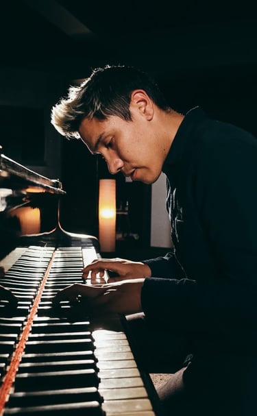 Explora mis composiciones y actuaciones como pianista y cantautor.